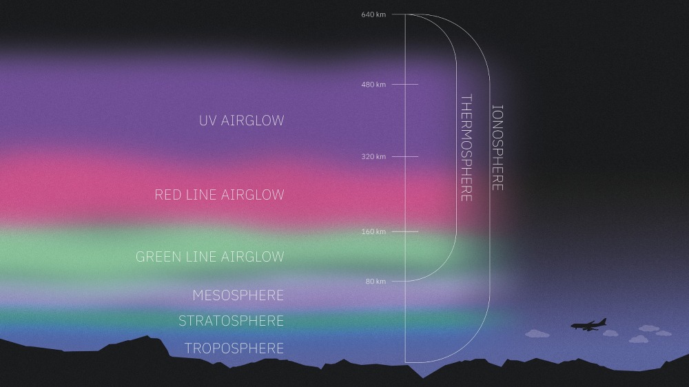الطبقة الحرارية العليا (Thermosphere): وهي الطبقة التي تلي الطبقة الخافتة وتمتد حتى ارتفاع يصل إلى حوالي 600 كيلومتراً. وتتحكم الطبقة الحرارية العليا في حركة الأيونات وتمتد فيها الأضواء الشمالية والجنوبية.